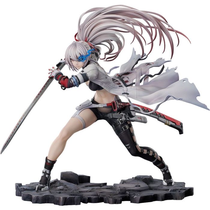 Special attention has been paid to the detailed sculpting of her muscular physique and details of her fluttering white hair.
