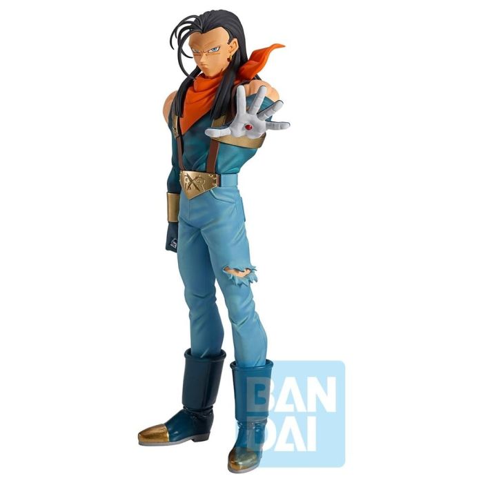 This detailed statue of Super Android 17 is from Bandai's 'Ichibansho' series, based on the 'Dragon Ball GT' license. It stands approximately 27 cm tall.