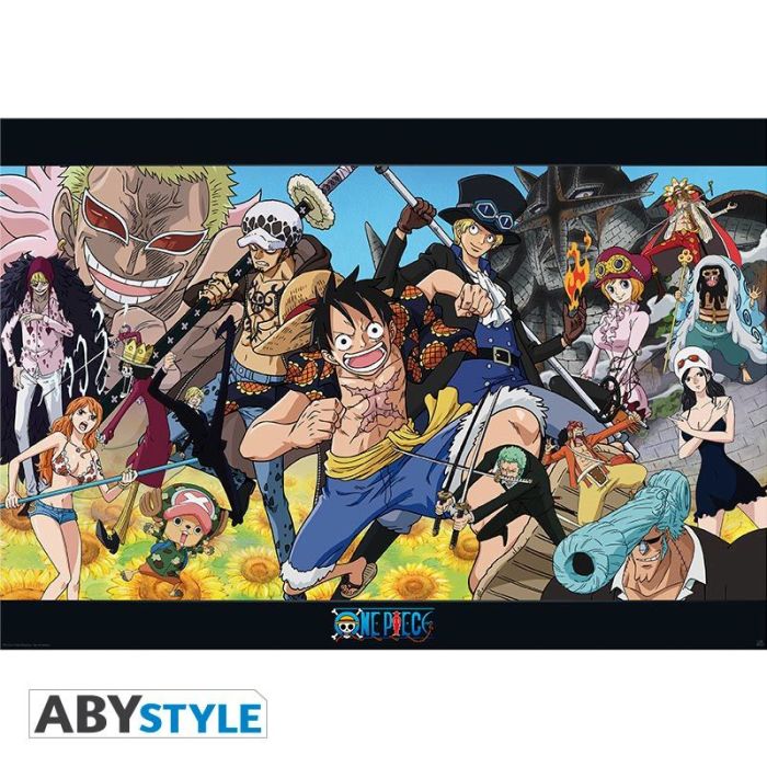 This poster of One Piece is 68cm high and 98cm wide. Excellent Quality, 170g/m2.
