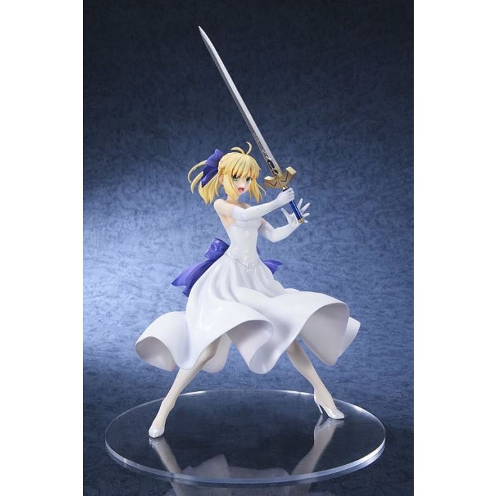 From the Fate/stay Night series comes a beautiful figure of Saber in a white dress! The sculpt is based on an illustration by Takashi Takeuchi that was featured in the second "Fate/stay night [Unlimited Blade Works]" Blu-ray box set, and perfectly captures Saber's determination and energy!