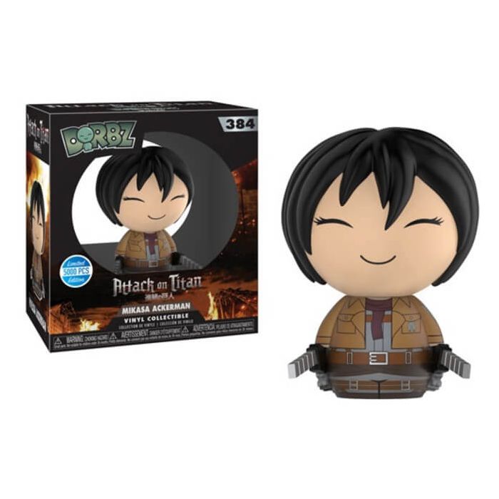 Official Funko Dorbz figure. Mikasa Ackerman (Attack on Titan) stands approximately 7.5 cm tall. Window box packaging.