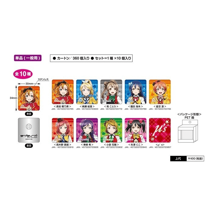 Love Live! Pins Collection, 1 pin will be send to you by random. Price per pin. Size 3 x 3.4cm, stainless steel.