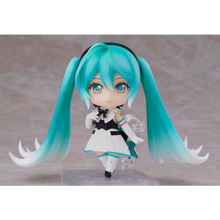From "Character Vocal Series 01: Hatsune Miku" comes a Nendoroid of Hatsune Miku based off of the main visual from the full orchestra concert "Hatsune Miku Symphony 2018-2019". The Nendoroid faithfully captures the neat and delicate design, originally illustrated by Rella. She comes with three face plates including a smiling expression, a winking expression and a singing expression!