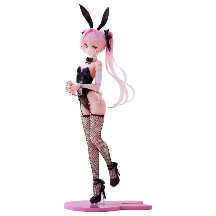 The figure faithfully captures the illustration's aesthetic, featuring beautiful sculpting that blends delicate charm with mature allure. Hatsune's glossy bunny suit features a delicate floral lace pattern. Three-dimensional detailing and meticulous paintwork enhance its refined and glamorous appearance. Details unique to the 1/6-scale figure—such as the stockings hugging Hatsune’s beautiful long legs and the soft, flowing movement of her hair—have been faithfully captured. The base of the figure features an original rabbit design that emphasizes the adorable appearance of the character. With its commanding presence, simply displaying this figure brings the world of the artwork to life in any space. With its translucent features and refined sculptural beauty, it is a must-have addition to any collection.