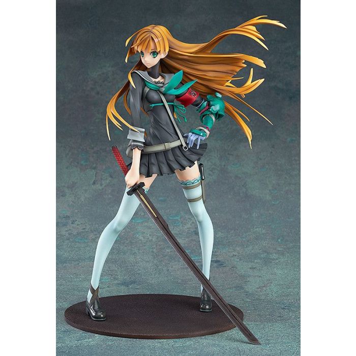 The figure is based on Shirow Miwa's illustration from the game and takes care to faithfully recreate the slim body design, beautiful long hair and protective gear in figure form - all the details of the figure are the same as the previous version, but the overall feeling of the figure has been changed with a shift in colors. As with the original figure, she also comes with a replaceable wrist part to display her with or without her samurai's katana!